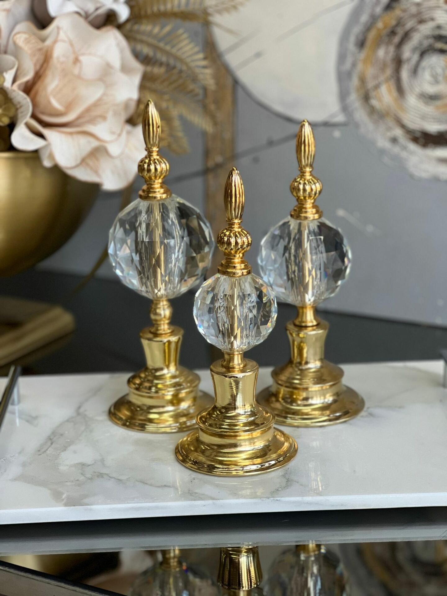 3'lü Metal Cam Küre Alem Obje Dekorlu
